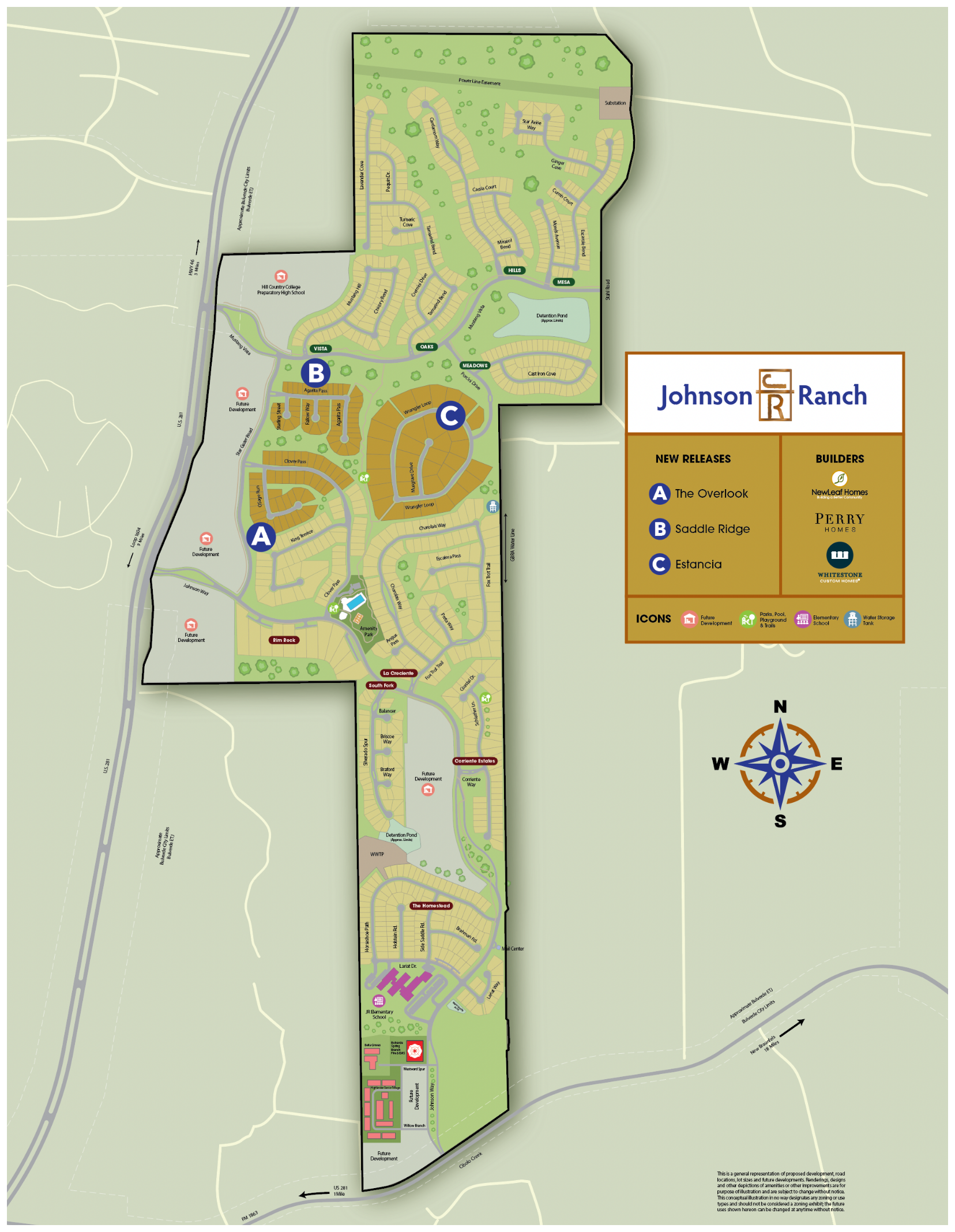 Located on Hwy 281 in Bulverde, Johnson Ranch mixes Texas’ ranch-style heritage with beautifully designed homes. Enjoy a close-knit community with plenty of room to work and play. Miles of trees, views and amenities help to create a lifestyle others only dream of.
